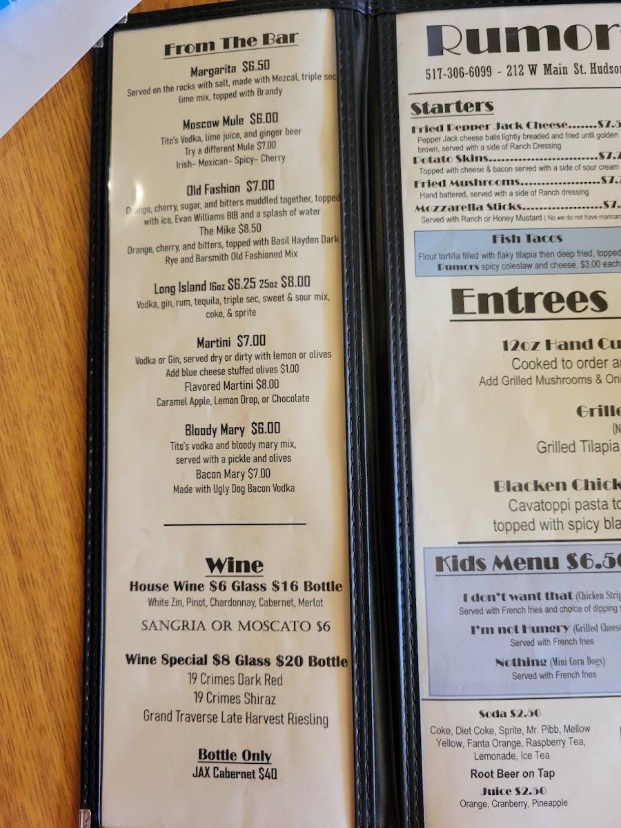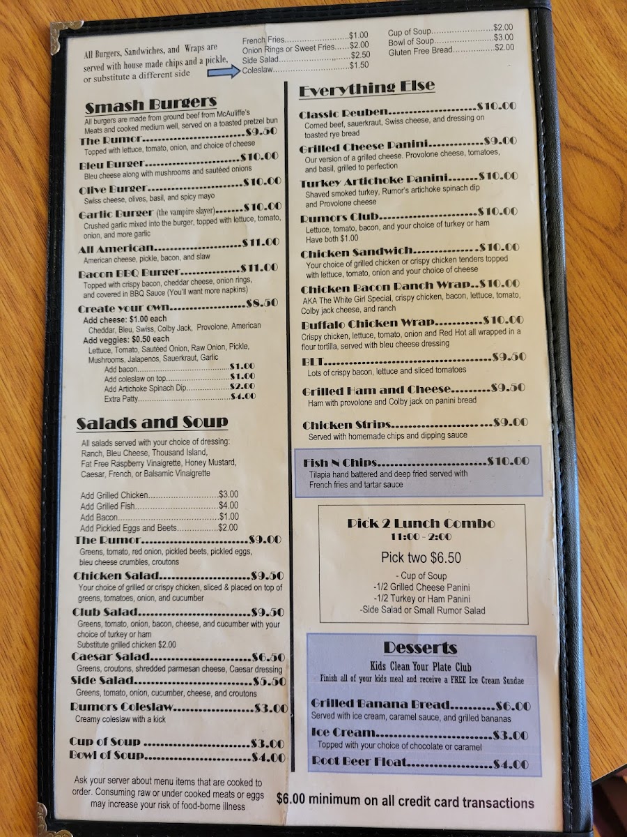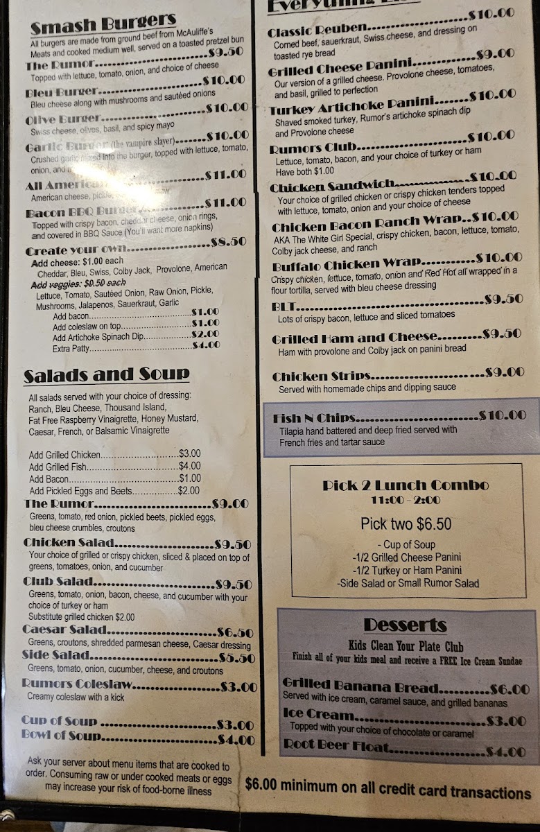 Rumors Inc. Menu