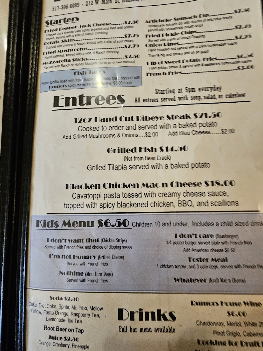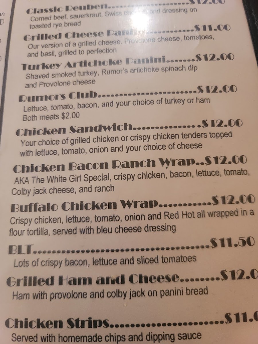 The menu at Rumors Inc. offers a straightforward, approachable selection that blends classic American bar and grill favorites with a few unique twists. It’s the kind of lineup you’d expect for relaxed dinners, casual gatherings, or an easy night out enjoying good company and time to unwind.